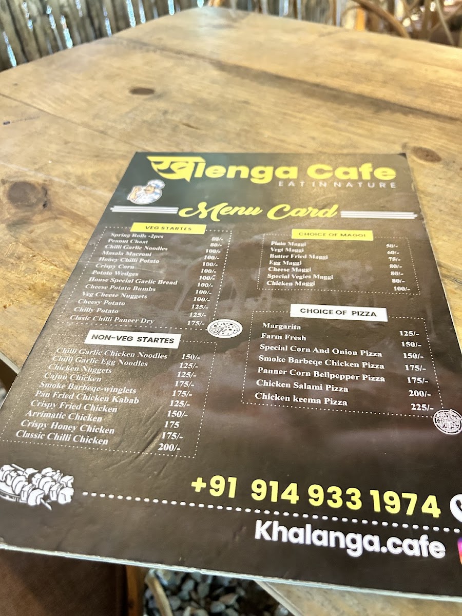 The menu at Khalenga Cafe offers a variety of options suitable for different times of the day, including breakfast, light meals, and snacks. It features a selection of beverages, pizzas, and non-vegetarian starters, catering to a range of tastes.